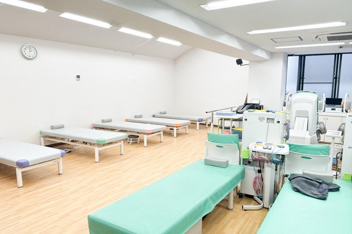 上肢交互運動器・平行棒・プラットホーム 当院では上肢交互運動器・平行棒・プラットホーム上での施術に力を入れております。 -